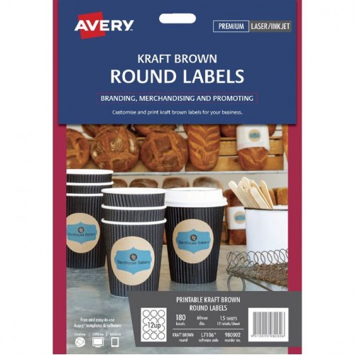 • Avery 12up Kraft Round 60mm Labels Pkt15
